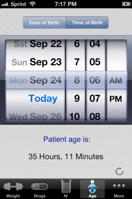 The IV rate calculator is the one function that seems out-of-place, as it is the only clear inpatient-based tool. It suggests recommended maintenance, bolus and fluid replacement rates based on the child's weight. While this is useful information to have in some situations, it is incongruous with the otherwise pediatric outpatient and newborn nursery tools and data.