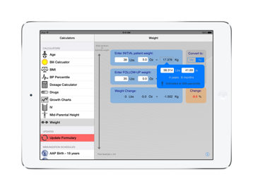 • Convert patient weights between Pounds/Ounces and Kilograms